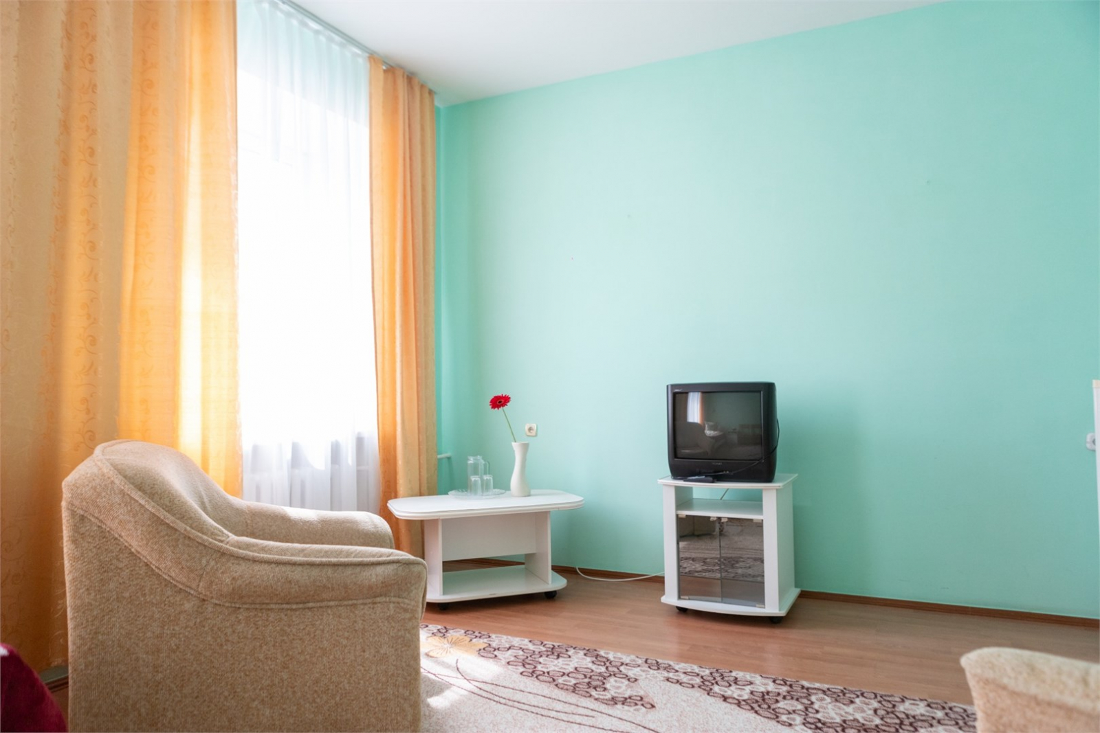 Площадь номера - 30-36 кв.м. 2 осн. места. 1 доп. место. Мебель: вешалка, зеркало, кресло, кровати односпальные, прикроватные тумбочки, столик журнальный, стулья, шкаф. Оборудование: гладильная доска, телевизор, холодильник, чайный набор посуды, электрочайник. Санузел: с ванной/душем, туалетные принадлежности, фен. Сервис: Wi-Fi бесплатно, смена полотенец, смена постельного белья, уборка номера.